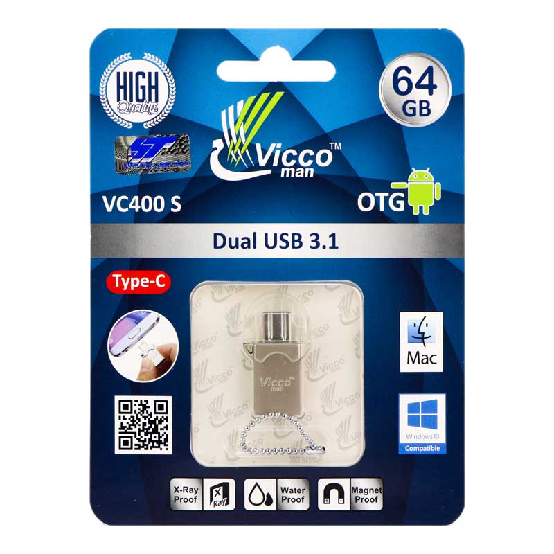فلش 64 گیگ ویکومن Vicco Man VC400 OTG Type-C USB3.1