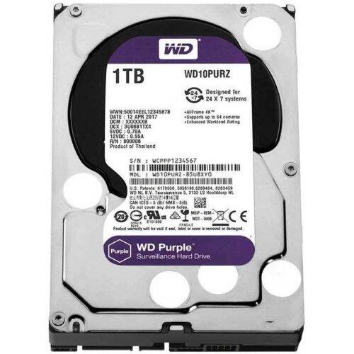 کمپانی وسترن دیجیتال بر خلاف دیگر شرکت های تولید کننده هارد دیسک به جای استفاده از عدد و مدل حافظه های خود را با رنگ بندی، ظرفیت و سرعت های مختلف متمایز نموده و به بازار عرضه می کند تا کاربران به سادگی بتوانند از میان آن ها محصول مورد نظر خود را جهت ذخیره سازی اطلاعات انتخاب نمایند. هارد بنفش وسترن دیجیتال با هدف ذخیره سازی داده ها به صورت مداوم طراحی شده و جهت استفاده در مراکز مانیتورینگ و ذخیره سازی داده های دوربین های مدار بسته کاربرد دارد. این مدل از سری هارد های بنفش Western Digital از ظرفیتی معادل ۱ ترابایت بهره می برد تا امکان ذخیره سازی داده های حجیم برای کاربران وجود داشته باشد.هارد ۱ ترابایت اینترنال Western Digital مدل Purple از هد ۳٫۵ اینچی با قابلیت چرخش ۵۴۰۰ دور در دقیقه با سرعت خواندن و نوشتن اطلاعات تا حداکثر ۱۱۰ مگابایت بر ثانیه بهره می برد، که میزان نویز حاصل از چرخش هد این دستگاه در حالت Seek به حداکثر ۲۴ دسی بل می رسد که از صدای بسیار کمی برخودار است. هارد دیسک اینترنال وسترن دیجیتال با فرم فاکتور ۳٫۵ اینچی و رابط SATA III امکان اتصال به دستگاه DVR یا مادربرد را داشته که به همراه حافظه کش ۶۴ مگابایتی از لگ و اختلالاتِ لود شدن اطلاعات جلوگیری می نماید. طبق ادعای شرکت وسترن دیجیتال این هارد قابلیت ذخیره سازی داده ها تا حداکثر ۱٫۸ ترابایت را دارا بوده و می تواند دمای – ۴۰ درجه الی +۷۰ درجه در حالت استراحت و دمای ۰ الی ۶۰ درجه را در حالت کار تحمل نماید و از عملکرد خوبی برخوردار باشد.
