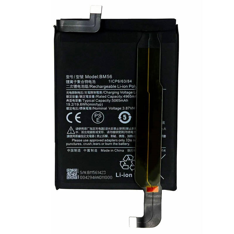 نوع باتری لیتیوم-یون پلیمری با ظرفیت ۴۹۶۵ میلی آمپر ساعت و ولتاژ ۳٫۸۷ ولت، سازگار با گوشی موبایل شیائومی