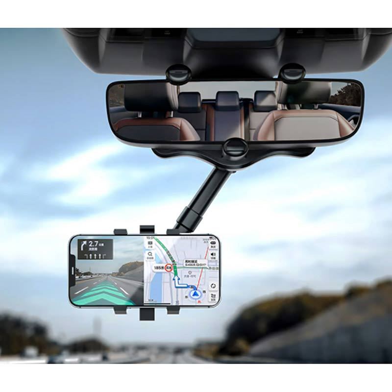 اتصال به آینه خودرو توسط 3 گیره، دارای گیره در طرفین براکت به منظور نگهداری گوشی موبایل