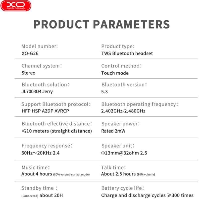 XO XO-G26 TWS Wireless Earphones