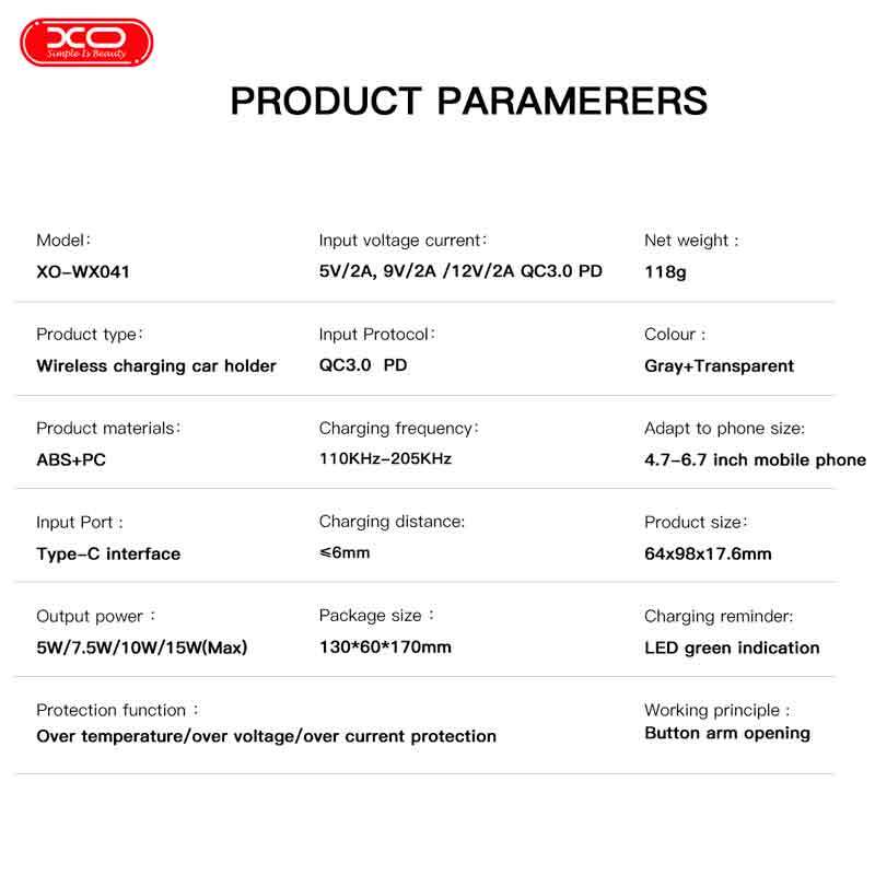 پایه نگهدارنده و شارژر بی سیم XO مدل XO-WX041 با توان خروجی 15 وات