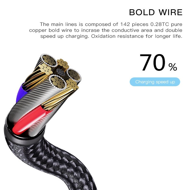 کابل به طول 120 سانتی متر با روکش از جنس الیاف به هم بافته شده مقاوم در برابر گره خوردگی و پارگی