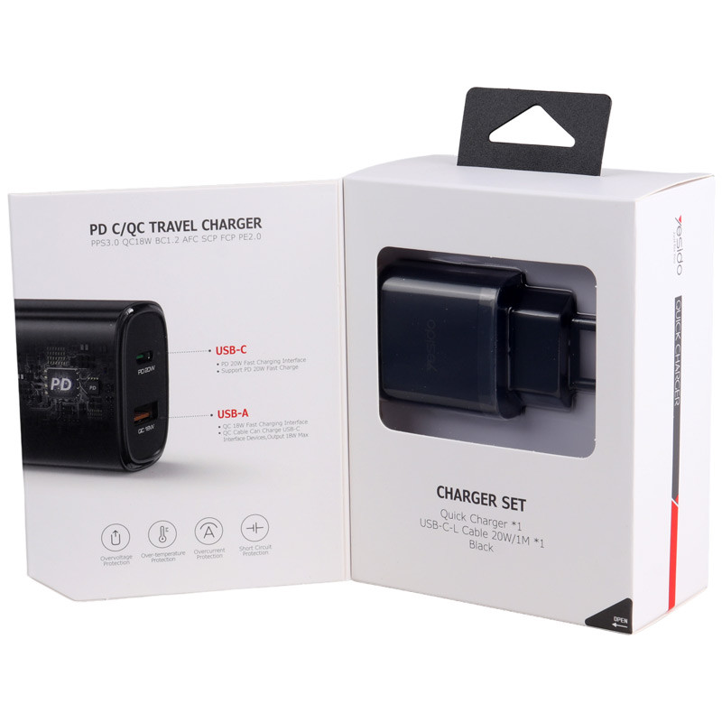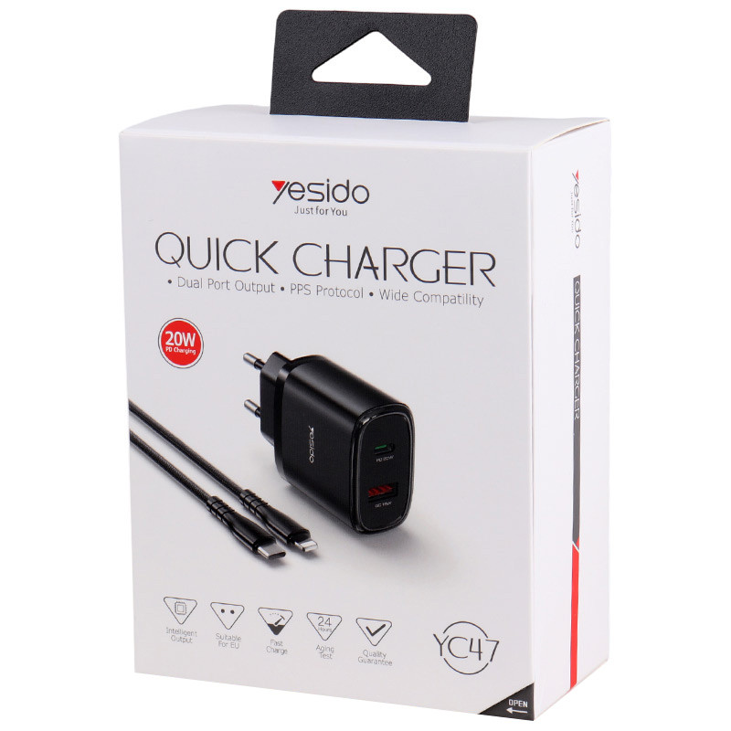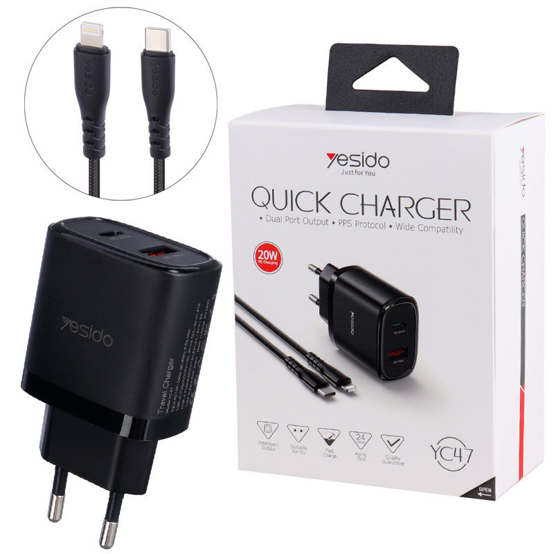 Yesido YC47 2Port 3A PD QC 20W Fast Wall Charger With Lightning Cable