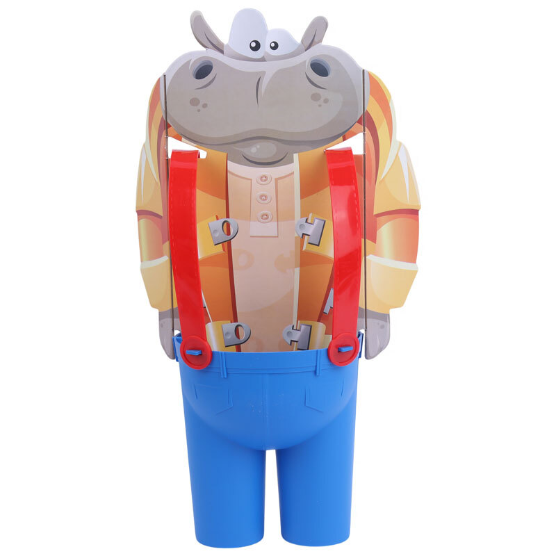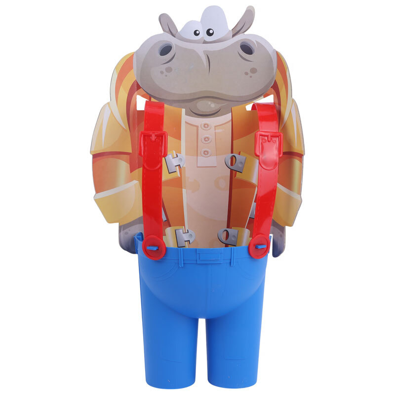 برای سرهم کردن بازی میریم سراغ یه عدد بزرگتر ِ باحوصله! بزرگتر عزیز باید کمربندها رو از داخل تصویر مقوایی اسب آبی رد کنه.حالا به کمک نقطههایی که روی قطعه پلاستیکی مشخص شده، باید اسب آبی رو بذارید داخل شلوار! بعد هر بازیکن چهار تا مورچهی همرنگ برمیداره و برای شروع بازی آماده میشه!